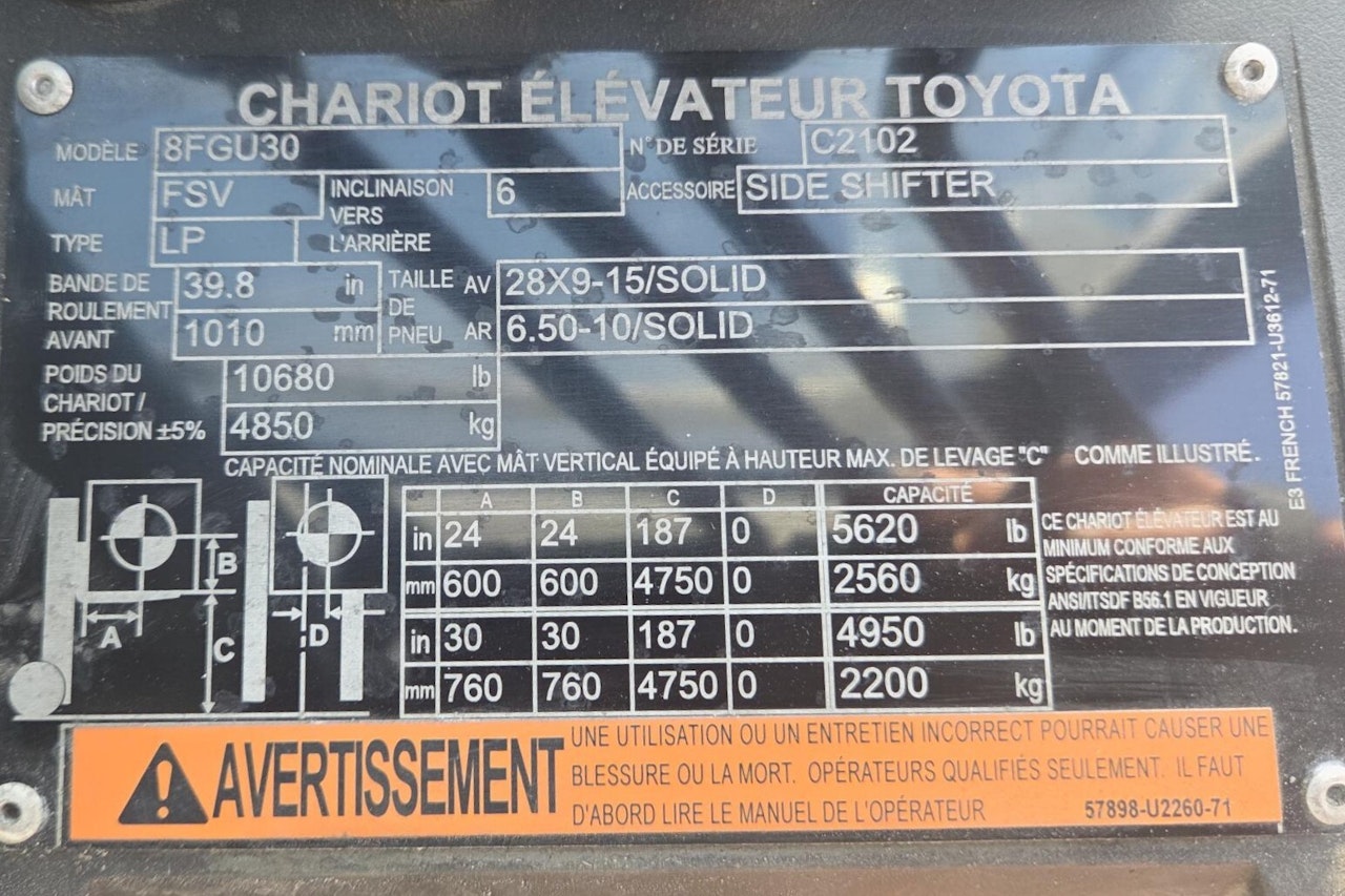 | Modèle | 8FGU30 |