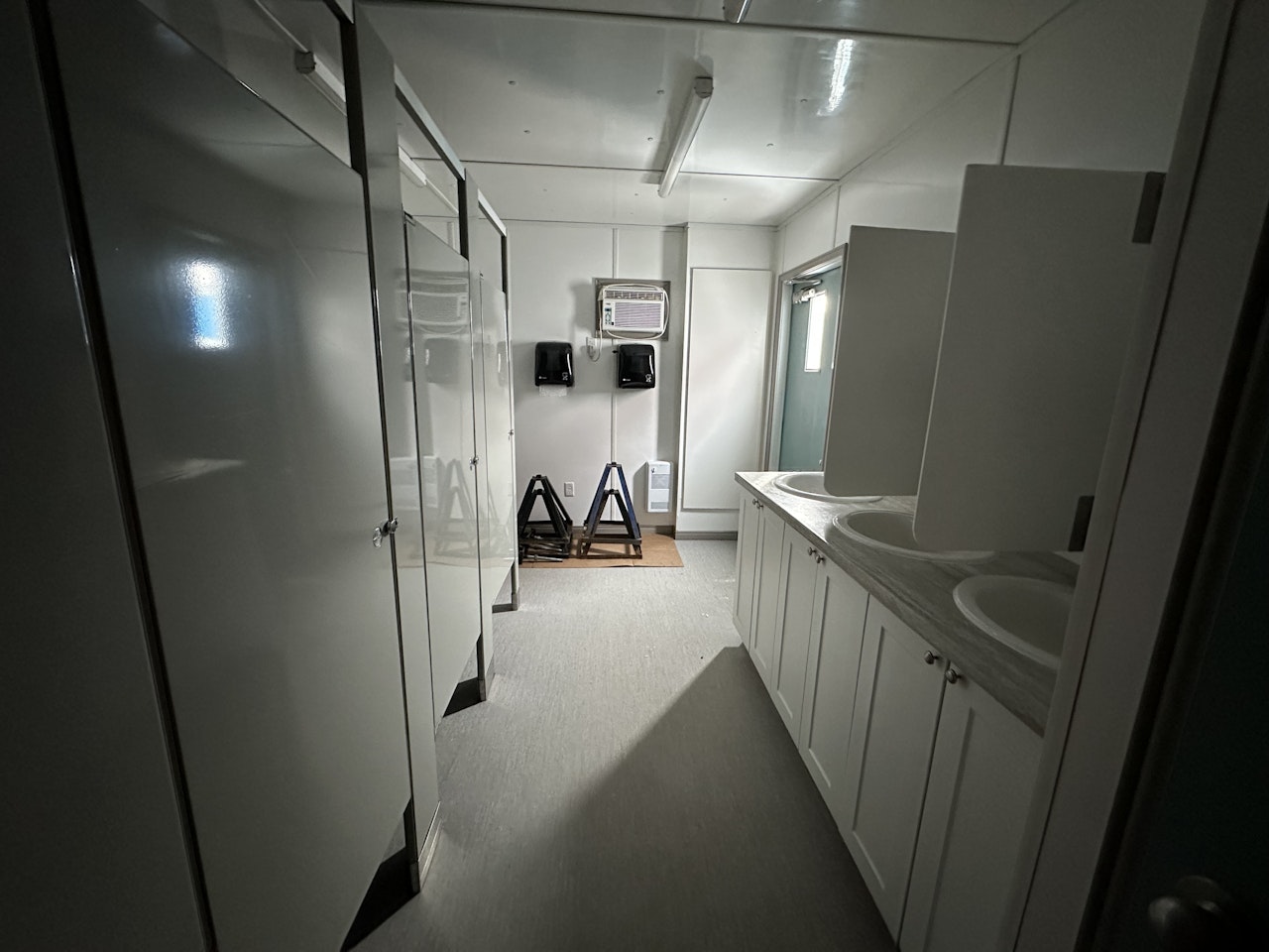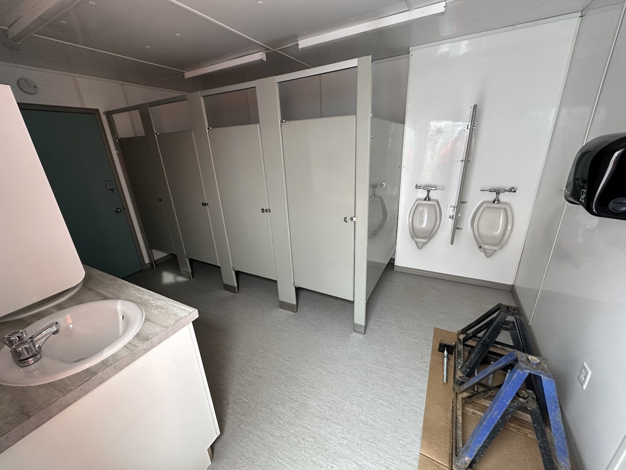 Men’s Restroom: 4 toilets + 2 urinals + 3 sinks