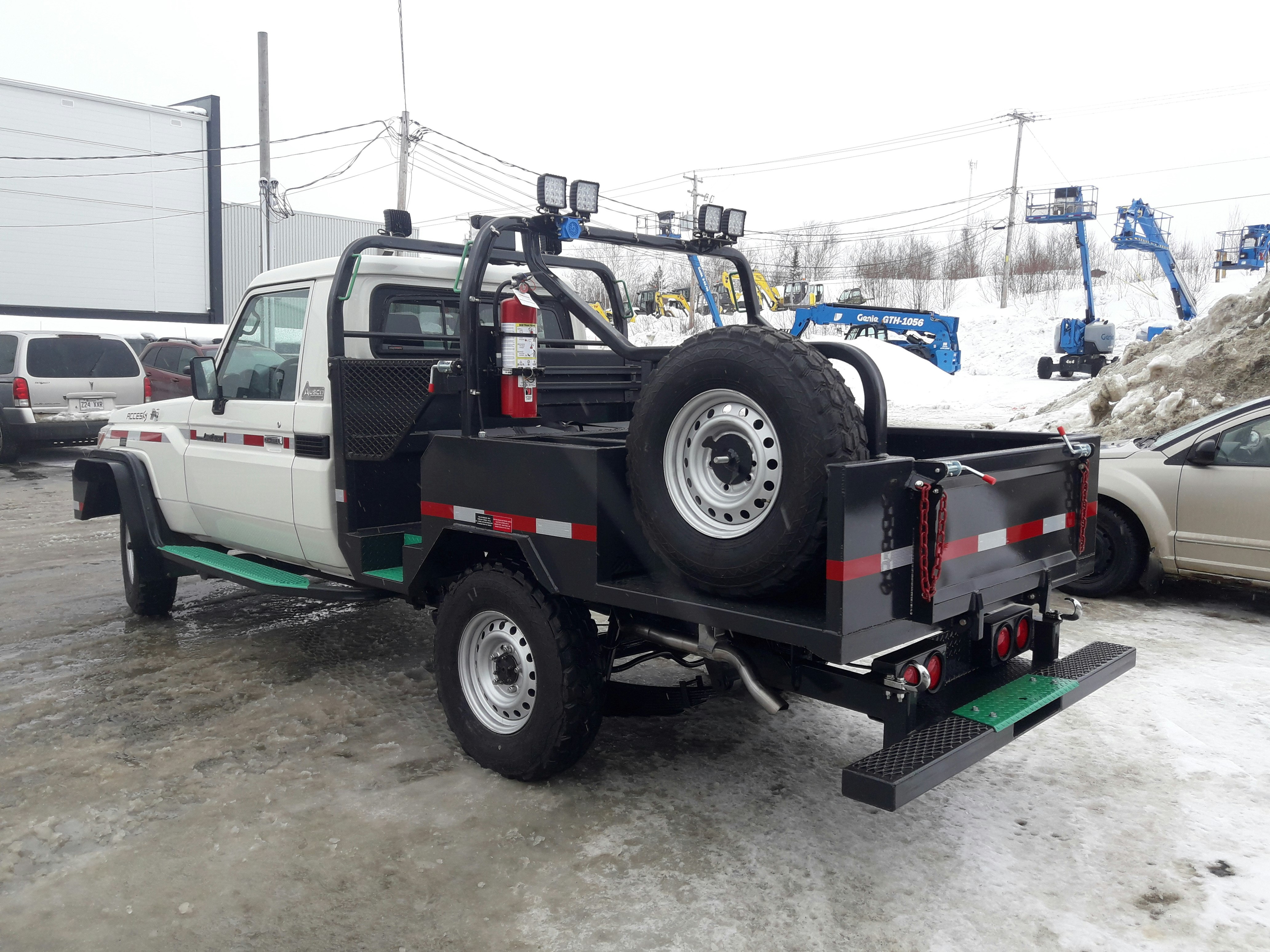Le Toyota Land Cruiser BTE-310 se distingue par son absence de toit et sa construction entièrement en acier. Il est idéal pour transporter des travailleurs et du matériel dans des sites miniers aux conditions plus chaudes, grâce à sa cabine arrière ouverte.